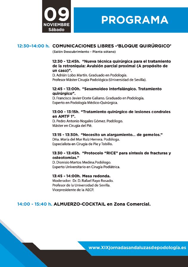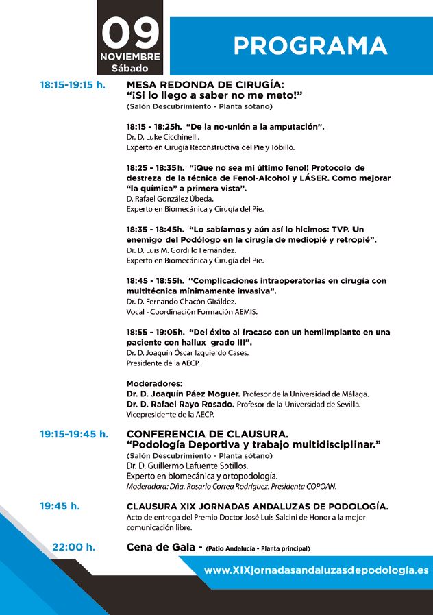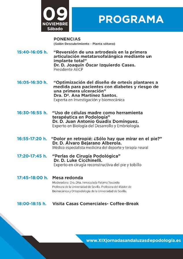 Más información: www.xixjornadasandaluzaspodologia.es